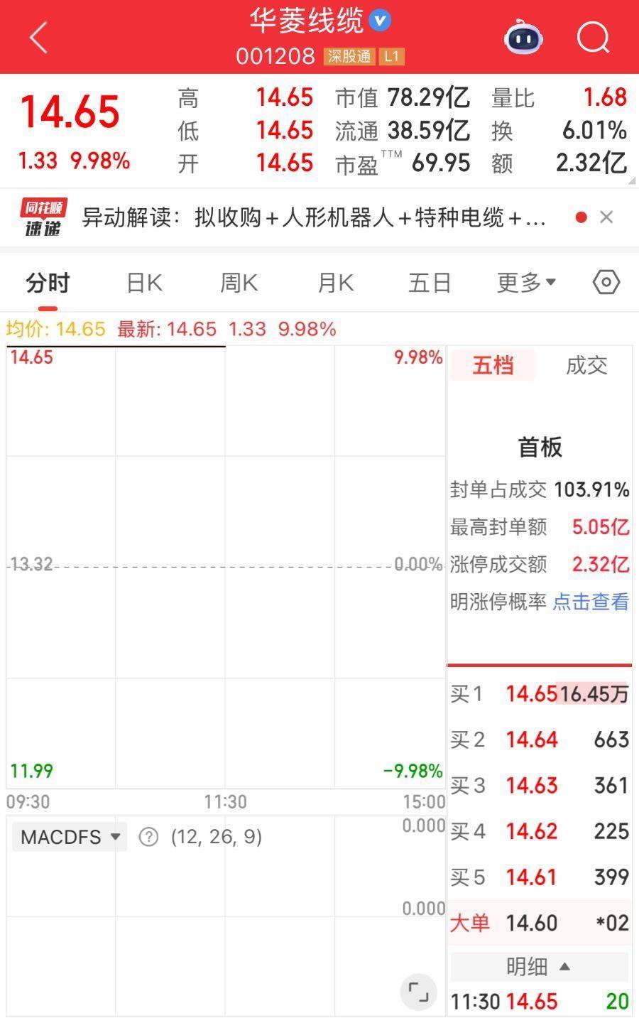 9月24日,华菱线缆(001208.SZ)开盘涨停申银优配,报14.65元/股。